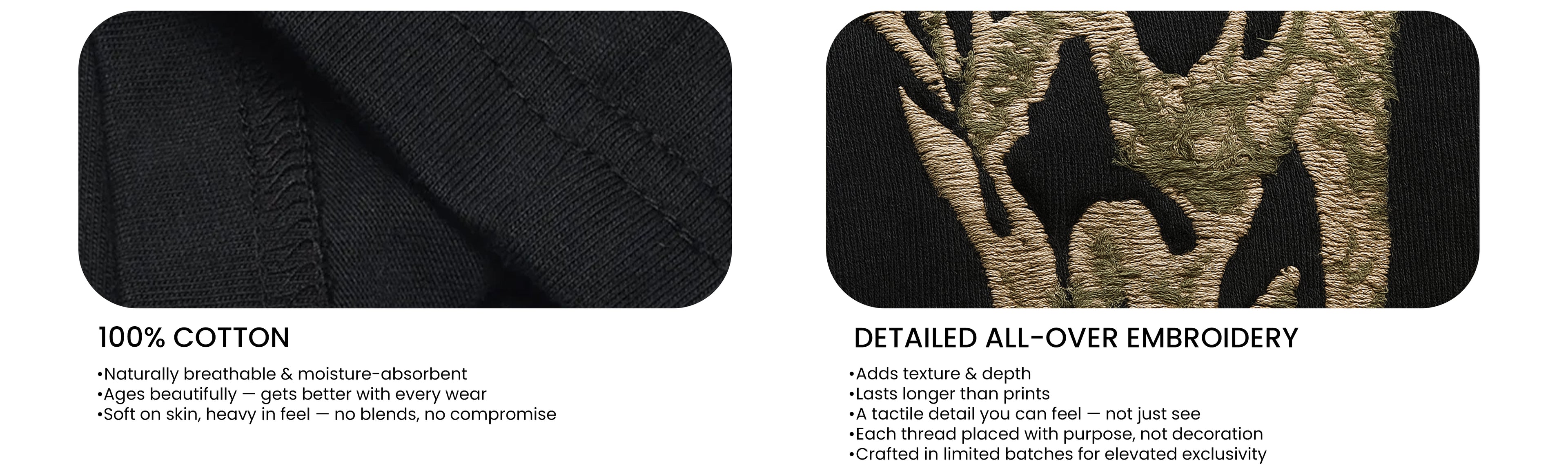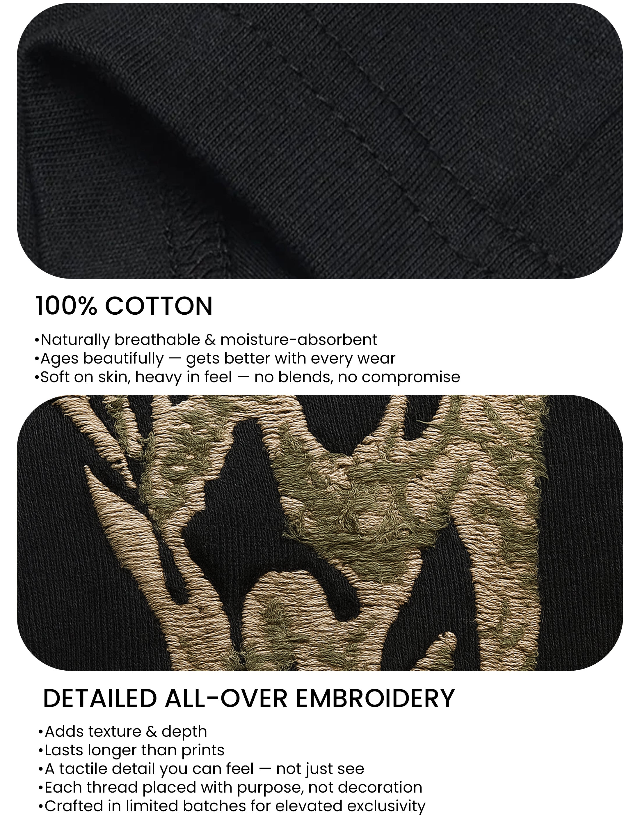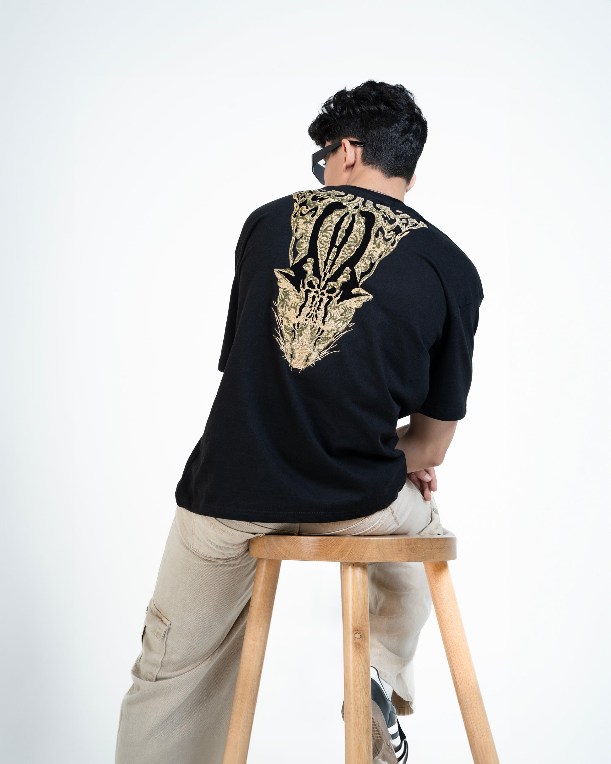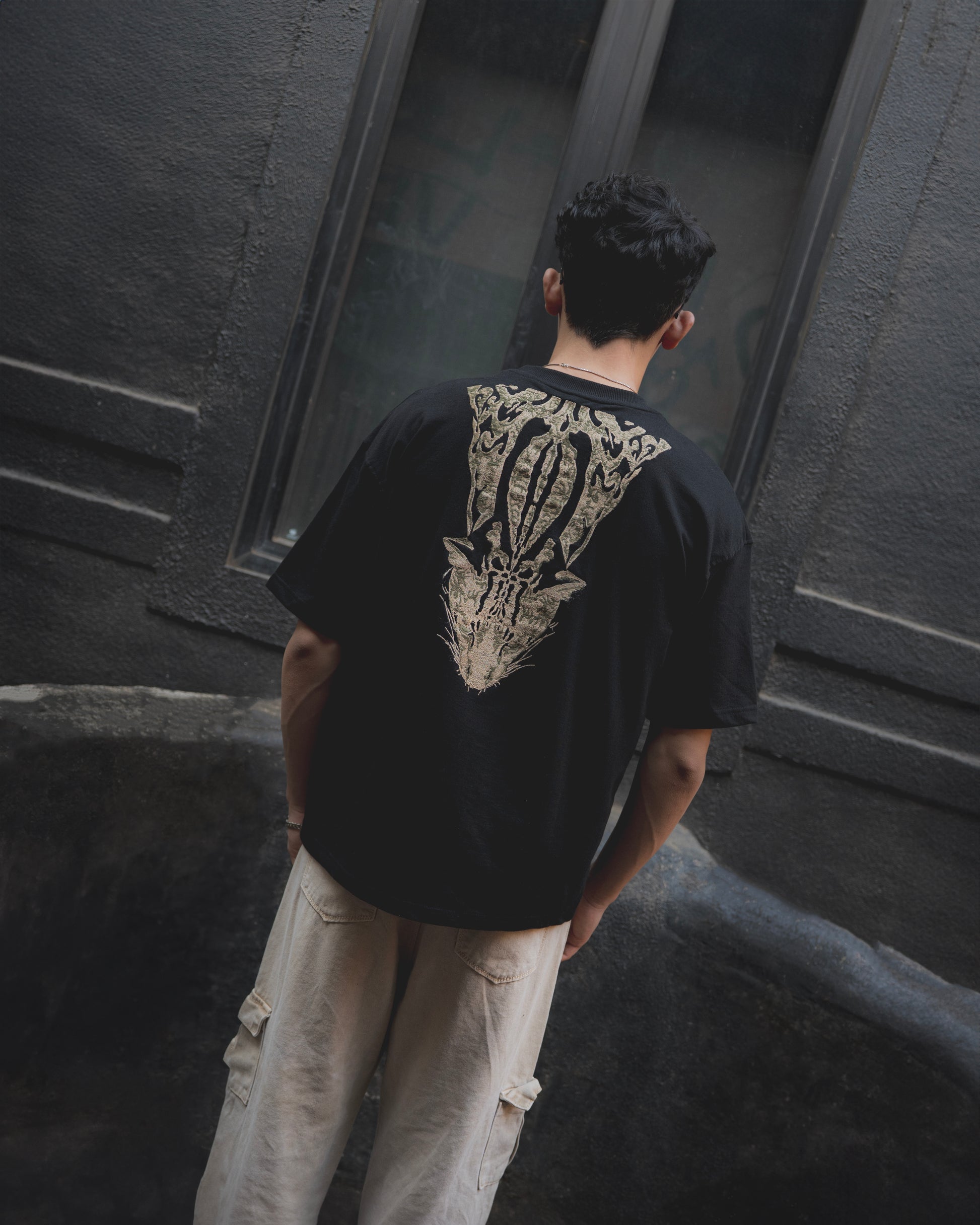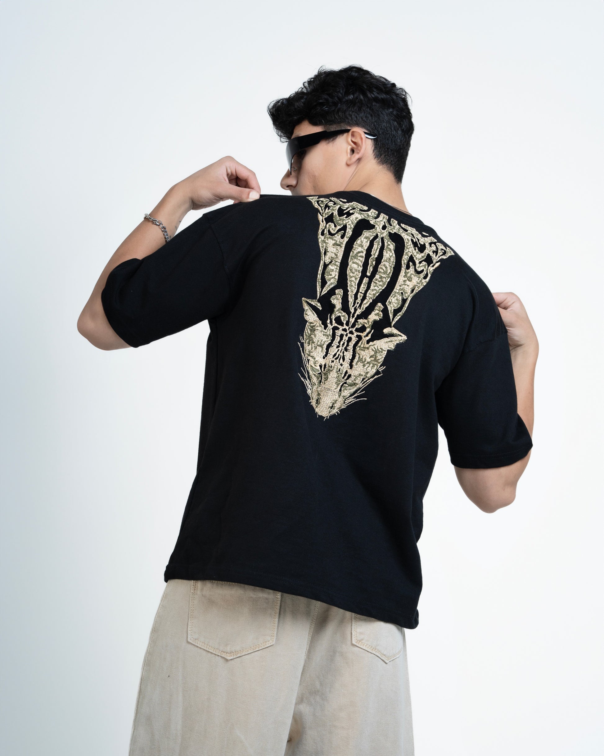 Unleash your wild side in Black Alley Beast. This all-black stunner is cut from premium organic cotton, soft on the skin but hard on the eyes. A bold leopard embroidery slinks out from the neckline, crawling over the shoulder and tearing down the back like it owns the night. Fierce. Loud. Untamed.Finished with the Minus Zero logo cleanly embroidered at the chest pocket placement — because real flex is in the detail.