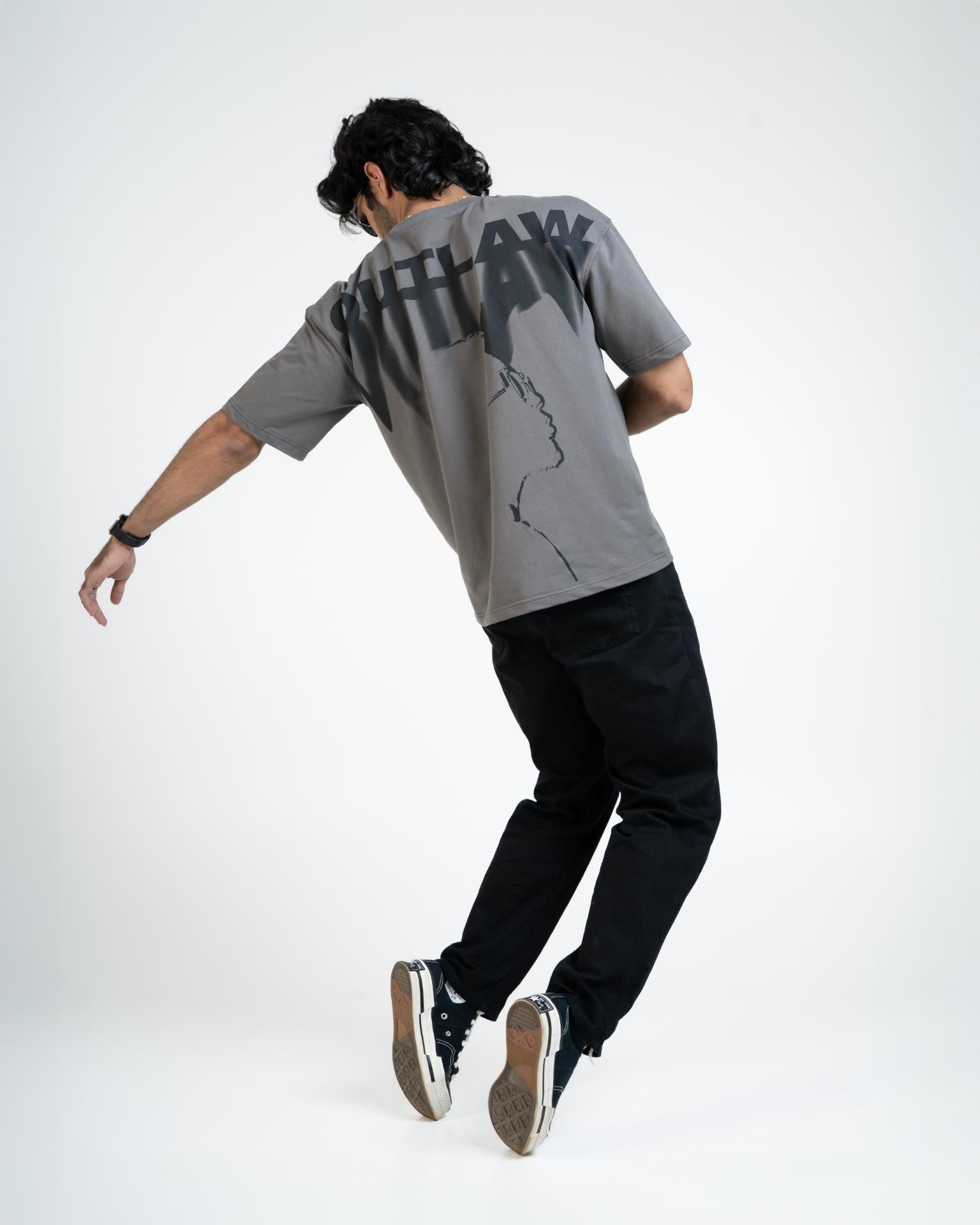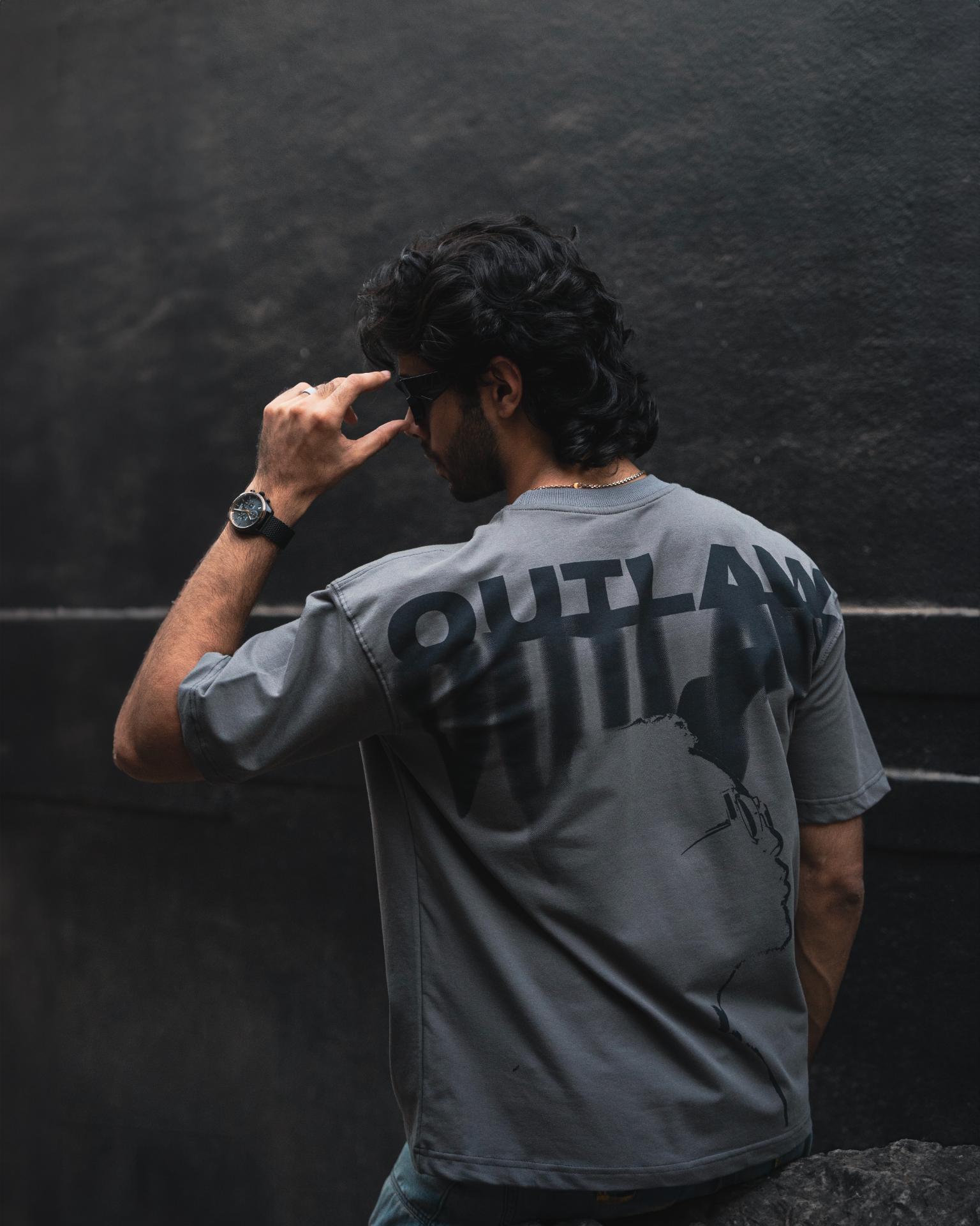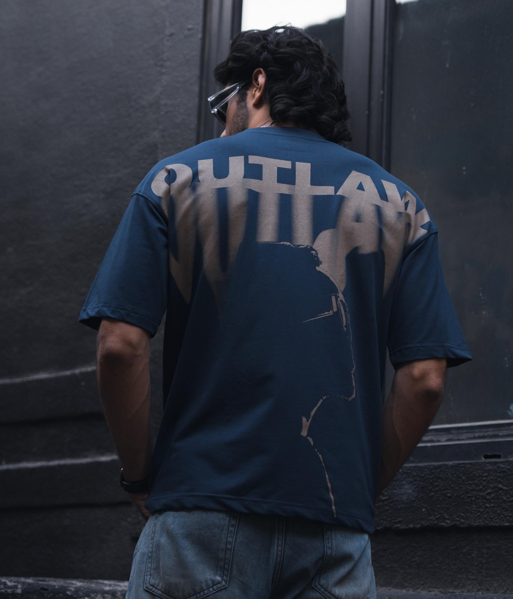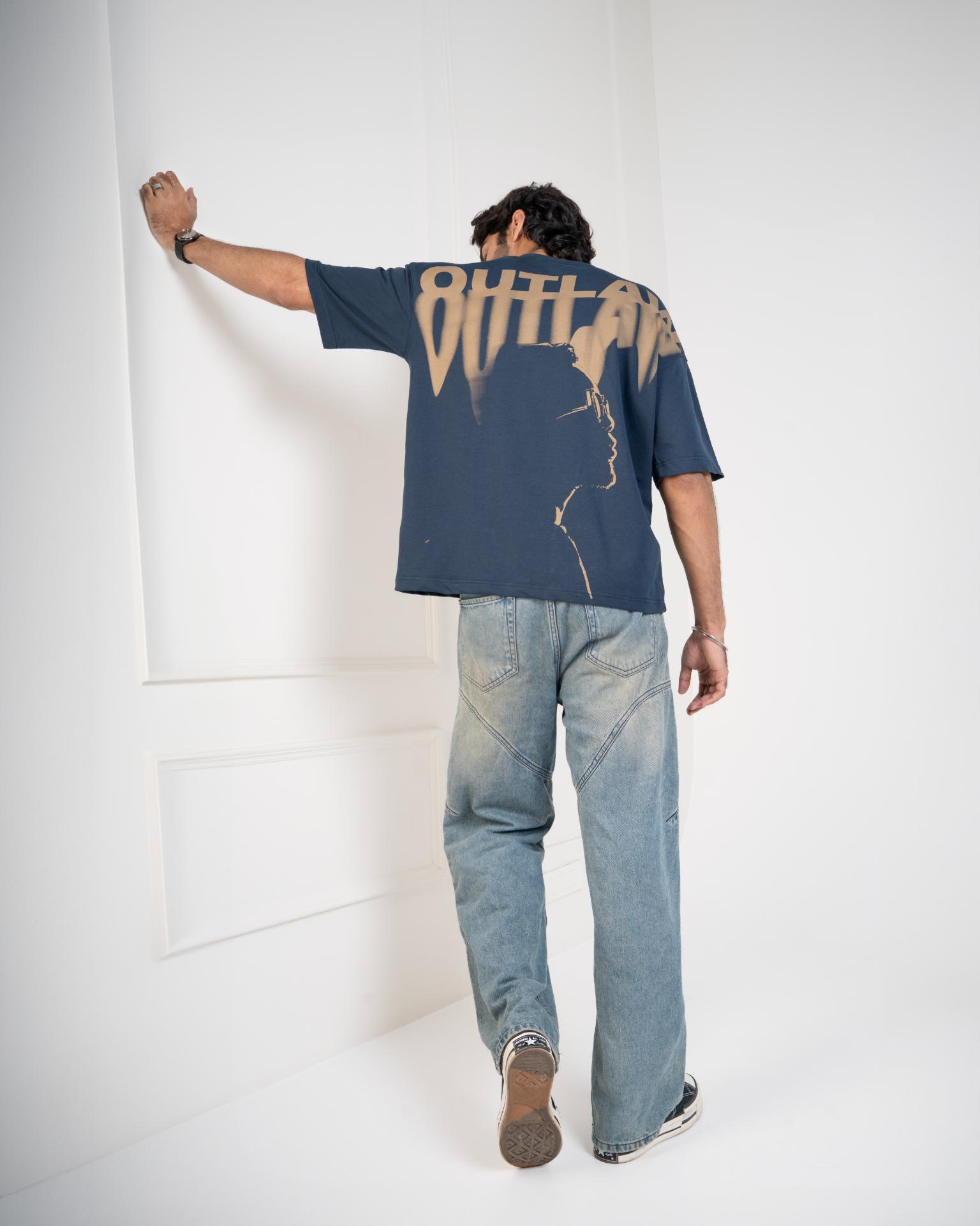 Defying the ordinary, the Outlawed Tee embodies the spirit of those who break boundaries. This blue and grey tee makes a statement with its oversized Outlaw print in contrasting brown and black tones.